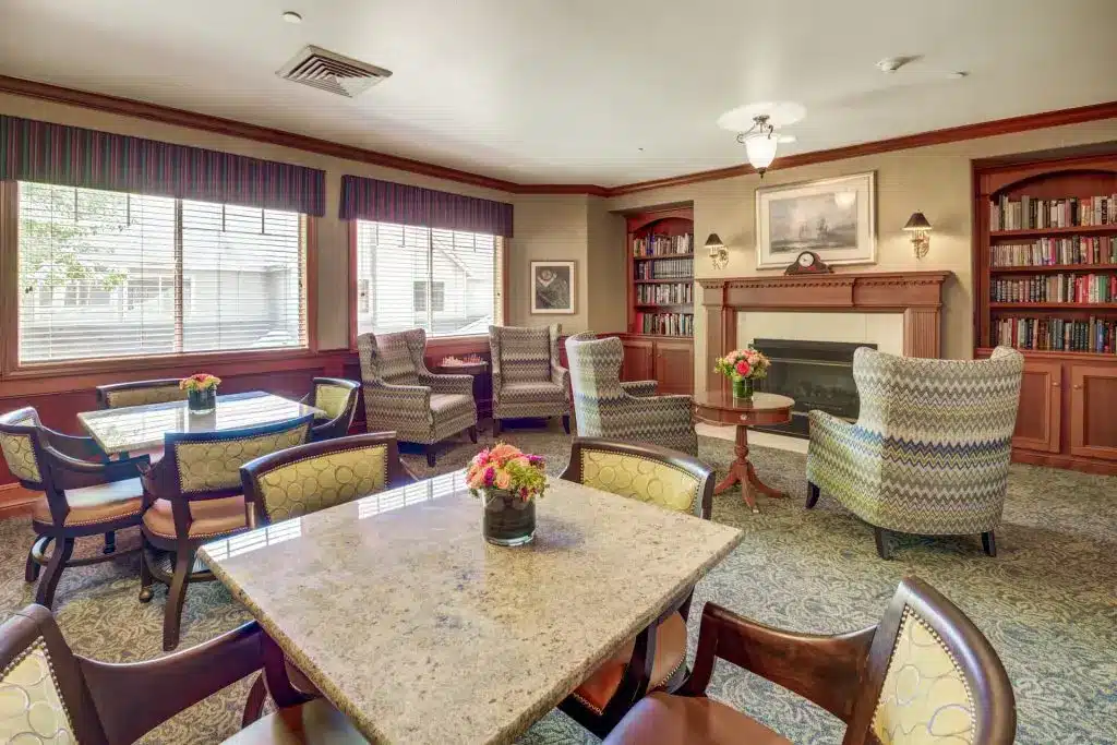 Natural light fills the sunny bistro, open lounges, and cozy private dining rooms. Strolls in the lush courtyard and walking paths offer daily moments of nature just a step away. Whether it’s a lively card game in the library or music in the main lounge, every detail feels like home.