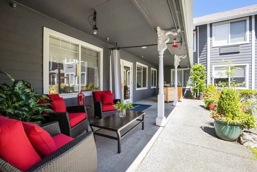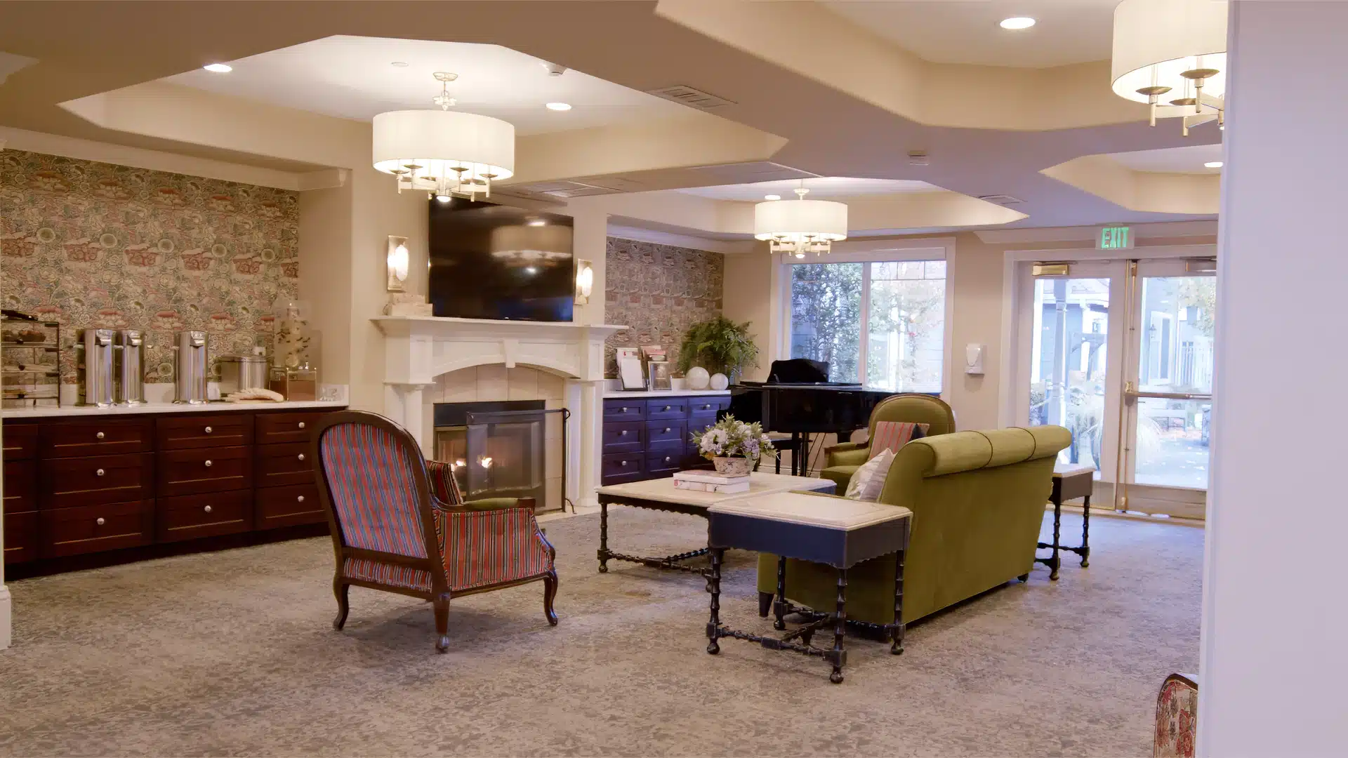 Walking through the doors of Aegis Living Kirkland truly feels like returning home. The covered front porch, classic gingerbread gables, and sunny, welcoming lobby create the feel of a friendly bed & breakfast, while cozy common rooms and cheerful gathering spaces invite residents to linger and connect. From relaxed afternoons on the patio to the musical energy of the grand living room, every element is designed to foster a sense of small-town comfort and genuine belonging.