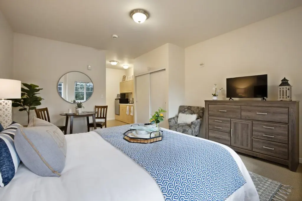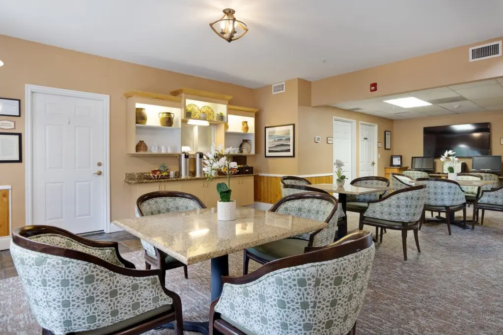 More than 200 monthly programs encourage exploration, learning, and connection with gardening in raised beds, walking club on forested paths, interactive TED-style talks, creative classes, live music, cooking demonstrations, and movie nights by the fire. The lodge’s boutique scale ensures that residents quickly become true neighbors, gathering for happy hour, social events, and outings to Kirkland’s cafés or Woodinville wineries.